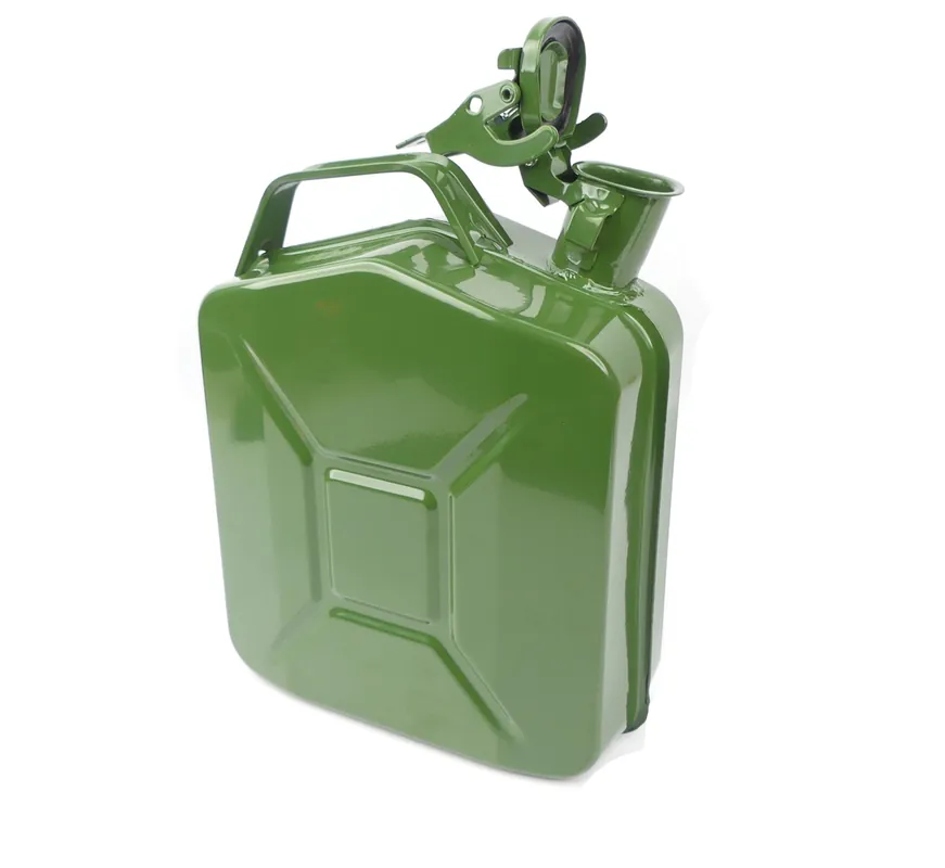 Kanister metalowy o pojemności 5 litrów w kolorze zielonym. Produkt dobrej jakości.